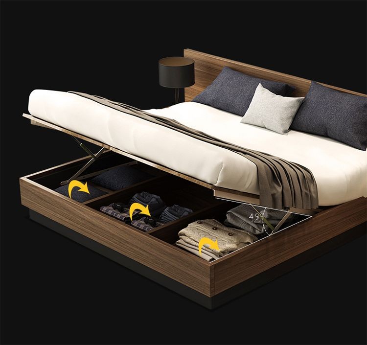 Mẫu giường này được thiết kế dát giường nâng rất tiện lợi mỗi khi khách hàng muốn lấy đồ. Ngoài ra giường còn được sử dụng 2 hộc đầu giường được gắn trực tiếp vào giường rất tiện dụng. 2 tap đầu giường là 2 ngăn kéo khác màu được sử dụng để chứa đựng các vật dụng cá nhận và 2 cánh cửa ngăn kéo được đóng mở hoàn toàn tự động mà không cần sử dụng đến nắm.